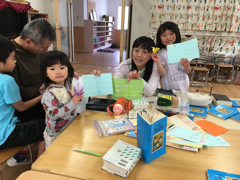 聖書の交わり 礼拝 子ども聖句はうたちゃん。はじめての奉仕です。 パンとぶどう酒…