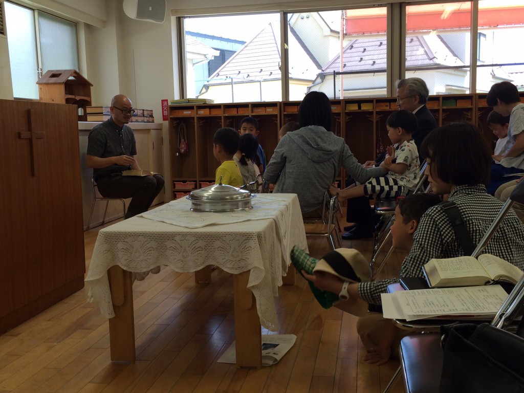 子ども説教はふみこさん 証は松下さん 主の晩餐の進行はちづこさん 配さんと応答の…
