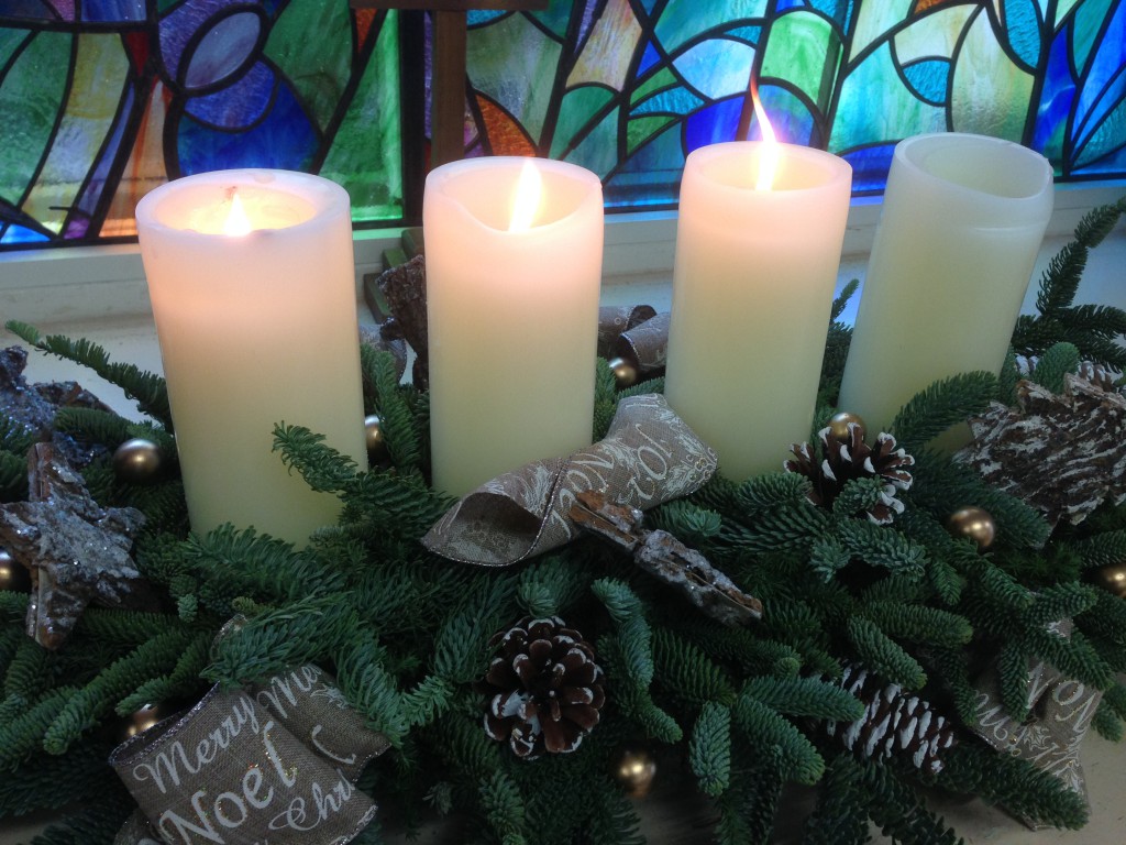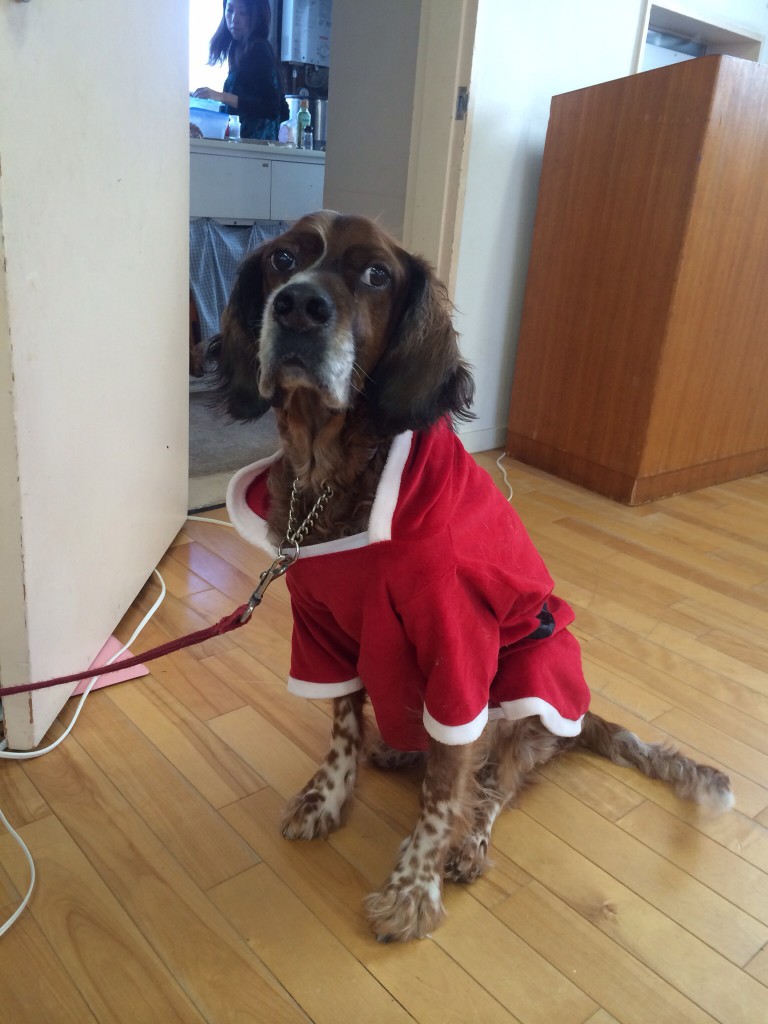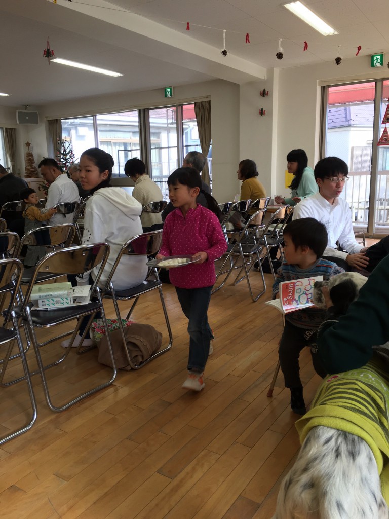 キャンドルサービス直前 始まりました。だんだん増えて、最後は44名+犬1頭になりました。 キャロリン…