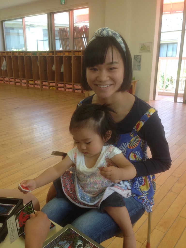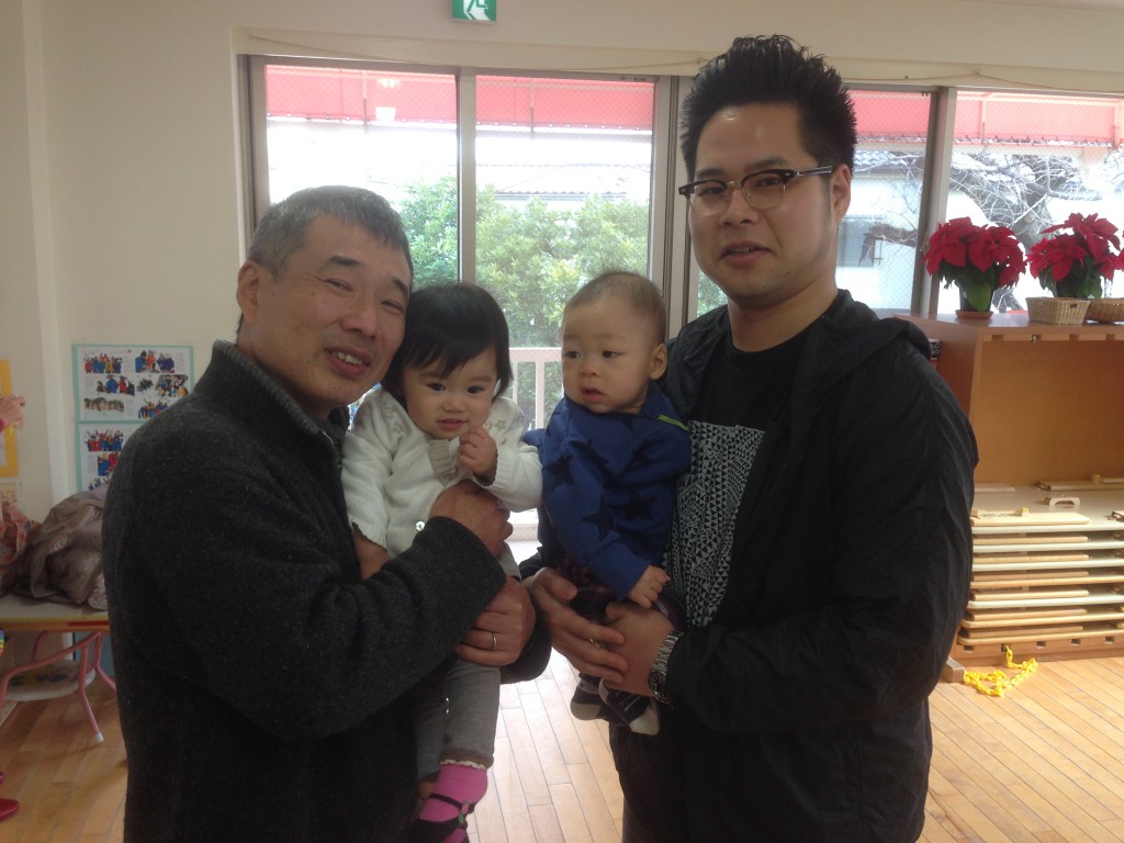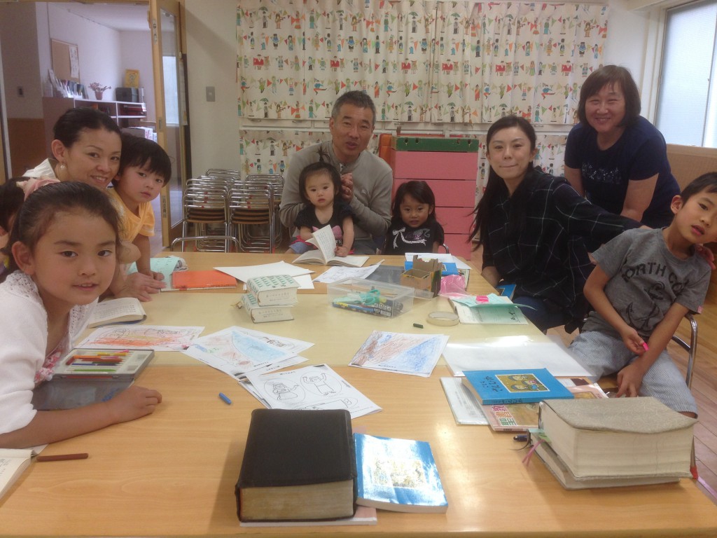 山﨑・清水家登場。 礼拝前に牧師館の広いベランダでこんなものを作っている中学生も。 礼拝前の様子。今…