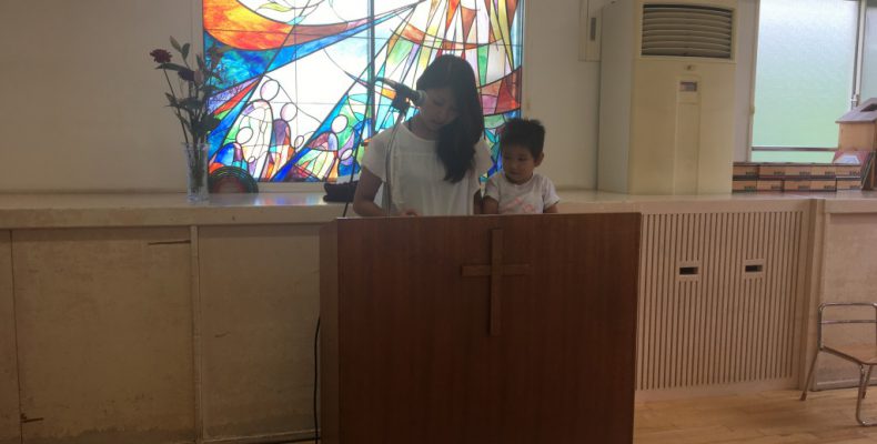 礼拝直前 聖書担当は千鶴子さん 始めの祈りは栗原さん 子ども聖句は享一郎さん 子ども説教は啓さん。 …