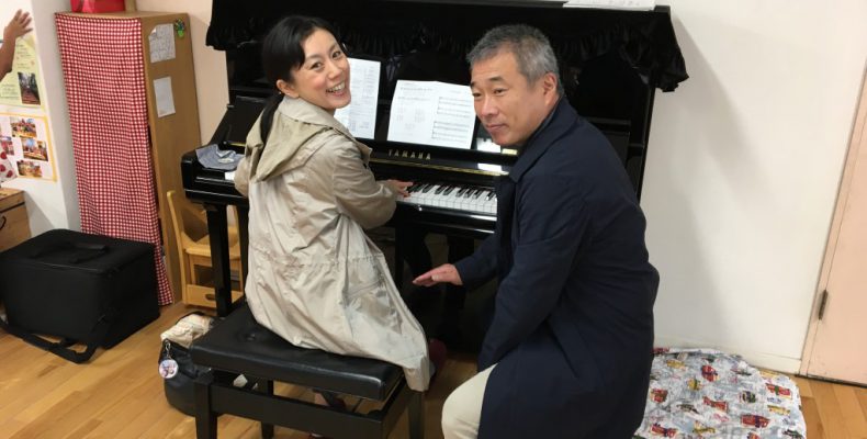 本日カホーン奏楽デビューの真一郎さん。 聖句担当は千鶴子さん。 はじめの祈りは真一郎さ…