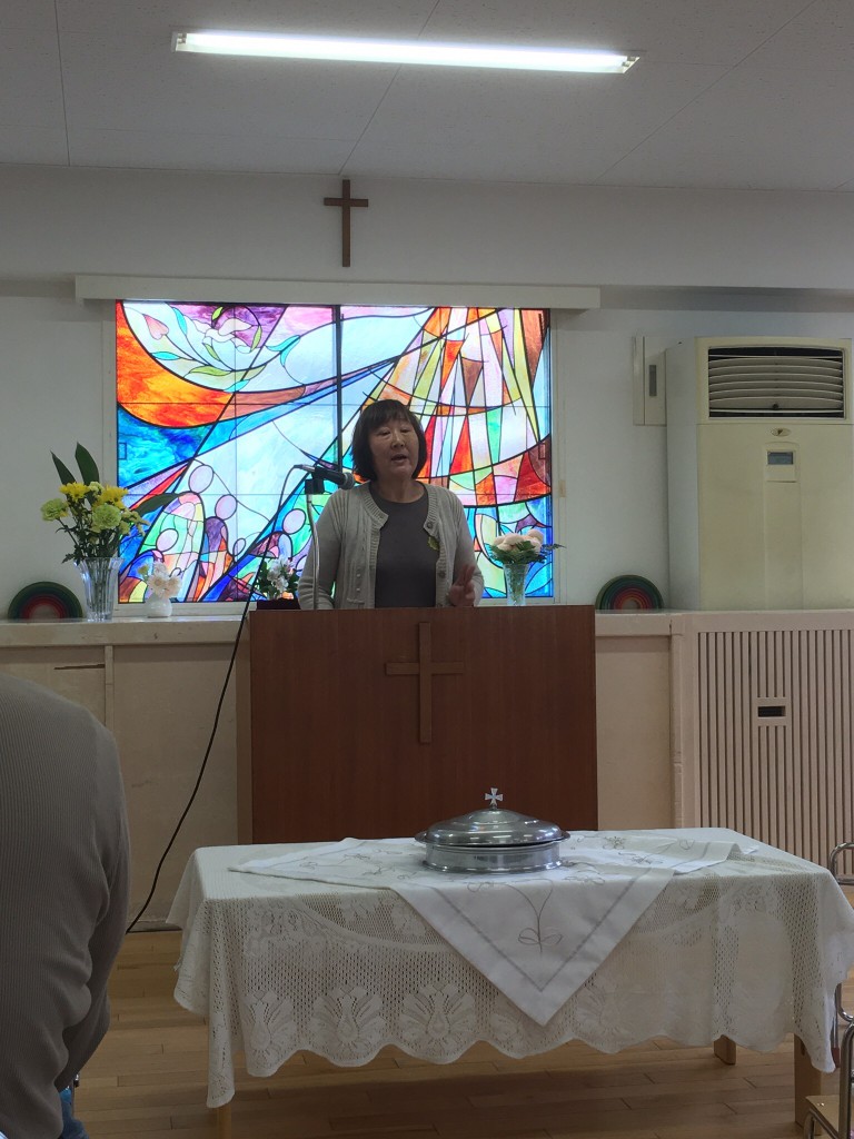 子ども説教はふみこさん 証は松下さん 主の晩餐の進行はちづこさん 配さんと応答の…